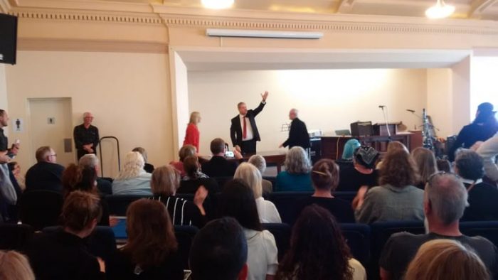Several hundreds of people attended the packed-out venue, far exceeding registration numbers. Moderating the event and introducing the speaker was Professor John Hartnett PhD.