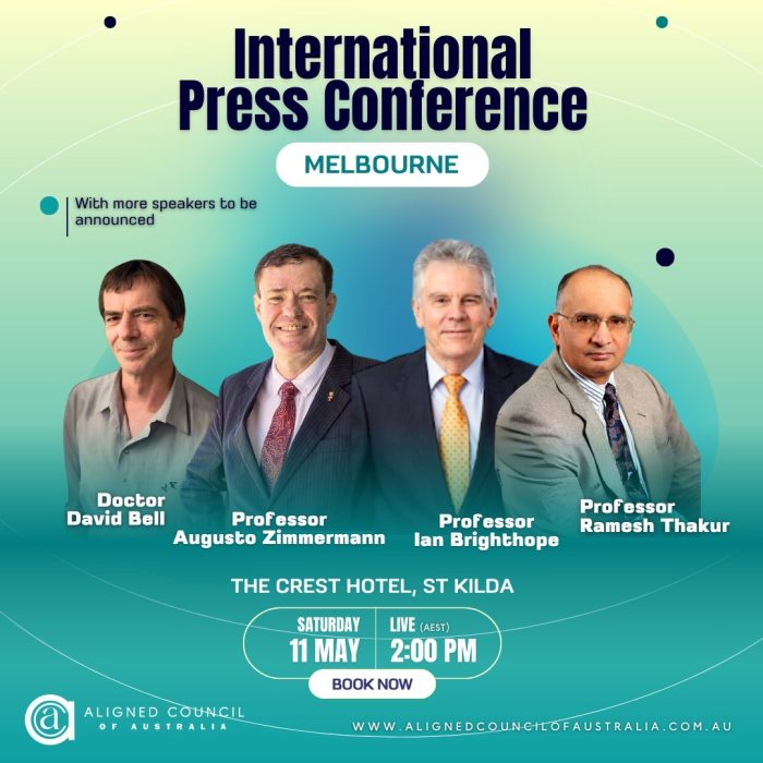 Come and join us at the Aligned Council of Australia’s Press Conference of World Renowned Experts to discuss the World Health Organization’s (W.H.O.) new pandemic treaties that are soon to be voted on.